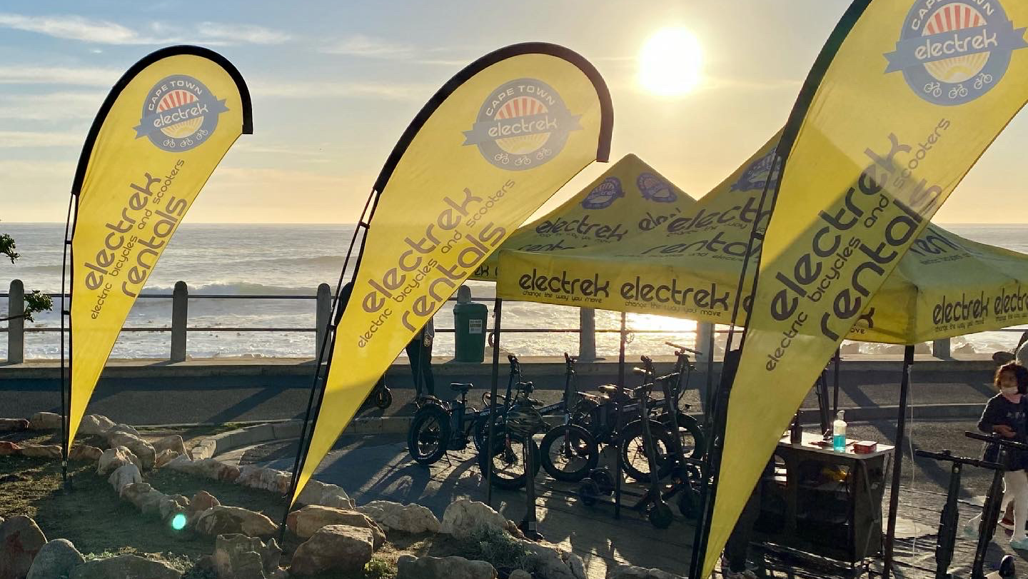 Cape Town Electrek offers electric scooter and bike rentals, providing an eco-friendly and enjoyable way to explore the city's scenic coastline. Located at Queen’s Beach parking lot in Sea Point and Two Oceans Beach, Surrey Place in Mouille Point, they are conveniently situated for both locals and visitors. Operating daily from 9:15 am to 6:00 pm, they ensure ample time to experience Cape Town's beauty.
